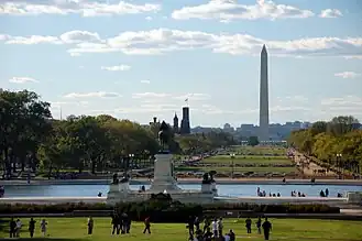 - π Peace Monument. A monument in memorial of U.S. naval deaths at sea during the Civil War stands at the northeastern end of the Capitol Reflecting Pool, bearing an assembly of four statues. Grief weeps over History at the top. Facing outwards is Victory, holding a laurel of victory, and flanked by young Mars and Neptune. Facing the Capitol is the statue of Peace, holding an olive branch, and surrounded by symbols of prosperity.