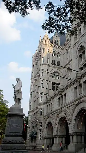 - π Old Post Office Tower, 1200 Pennsylvania Ave NW (enter on 12th St. near Starbucks, follow signs to Tower elevator). 9AM-4PM. Closed on one day during the first week of each month. At the top of the Waldorf Astoria Hotel Washington DC. One of the best views of the city. Free.
