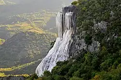 - Hierve el Agua in Oaxaca, Mexico, is a petrified waterfall. Although it looks like flowing water, it is actually a stone formation