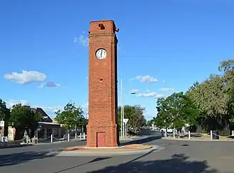 The name Wee Waa (pronounced as 'we wore') means 'fire for roasting' in the indigenous Kamilaroi language. The first farm in the district was established in 1837 and a settlement was founded in the 1840s, the first settlement on the Namoi River. A railway line was extended in 1908 from Narrabri to Walgett, passing through the town, although passenger services ceased by 1975. Wee Waa serves the villages of Burren Junction, Pilliga, and Gwabegar.