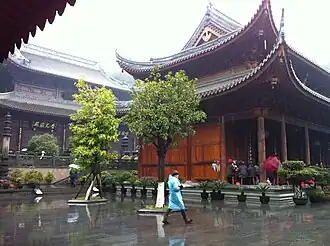 - 🌍 Taiping Temple (太平寺; Tàipíngsì), 812 Lucheng Road, Lucheng District (鹿城区鹿城路812号) (Taxi will cost ¥15-17. There is a bus stop right outside the temple, which is served by bus routes 5, 10, 14, 23, 28, 30, 37, 43, 46, 50, 51, 55, 58, 59, 60, 80, 98, 101, 105, 107, 111, b103 and b106), ☏ +86 577 88722036. Really new, but very nice temple on the western edge of Wenzhou. The temple actually has a rather long history, having originally been established in 942 AD, but during the Second World War, the temple was converted into an army barracks and later demolished. The current buildings were built between 2003 and 2006. Free.