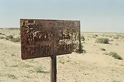 There was war in Western Sahara for over 15 years in the 1970s and 1980s, and as a result, the landmine and UXO situation to this day remains quite unclear, despite efforts of the Moroccan Government to improve the situation. There are landmines not only in the remote parts of the country close to berm, but all the way down main coastal road (N1) to the Mauritanian border. Google Earth clearly shows the efforts to clear minefields all along N1, which continue to this day—despite Moroccan officers tending to tell tourists that this part of the country is safe. Around the settlements (Boujdour, Ad-Dakhla, Golfe de Cintra) the situation seems to be slightly worse, possibly due their strategic significance in the war. The warning signs are sometimes so rusty that they can't be recognised anymore, but usually the combination of two small metal signs is a strong indicator.