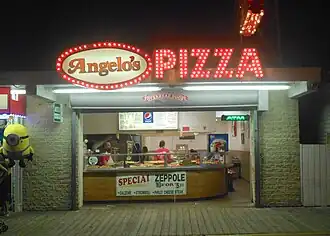 Wildwood features numerous places to sample a taste of the Jersey shore in all types of settings. If you are looking for a quick bite to eat, there is no better place to sample a tasty treat than the boardwalk. From the famous pizza shop rivals, Sam's and Mack's (everyone has a preference), to Curly's french fries, Laura's and Douglas's Fudge shops, to countless ice cream, Kohr Bros' frozen custard, and funnel cake stands, the smell of the boardwalk is just as prominent as the sounds of shrieking children and laughs from families enjoying each other's company. You can find popcorn, gourmet pizza, cheesesteaks, hot dogs, waffles and ice cream, Polish water ice, chocolate covered bananas, deep fried Oreos, milkshakes, and every kind of candy on the boardwalk. For incredibly fresh-baked doughnuts and pastries, Britton's bakery is a must stop.