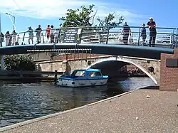 Wroxham and Hoveton are two towns in Norfolk separated by the River Bure. They are connected by a road, foot and rail bridges. Wroxham is unofficially often known as "Capital of the Broads", though in practice Hoveton has the vast majority of marinas, boat yards and boat hire centres, and most of the commercial activity.