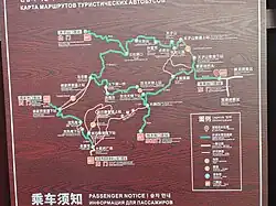 - "Zhangjiajie National Forest Park" (the southern entrance of the park) - a city-like electric bus runs on this route.