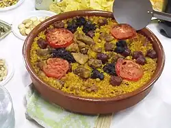 Xàtiva is most known for its rice dishes, especially arrós al forn (Spanish: 'arroz al horno'), a rice dish baked in a clay pot with blood sausage and vegetables. Another local specialty is arnadí, a pumpkin pie with almonds, pine nuts and cinnamon.