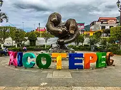 - π Zocalo. Xicotepec's main square takes up about 2 square city blocks and is filled with more flowers than just about any town zocalo you've ever seen. There's also some impressive topiary and lots of park benches for sitting, sipping coffee from the sidewalk vendors, and doing serious people watching, especially Sunday when all the families are out walking and browsing through the tianguis (since Sunday is also market day in Xicotepec.) This is where you'll find the big colorful letters spelling out the town's name. A popular selfie spot.