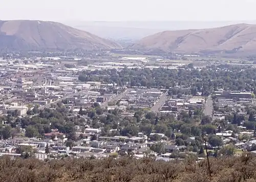 Yakima is a city of 94,000 people (2019) in the Yakima Valley, part of the Columbia River Plateau region of Washington State. It is the county seat of Yakima County. This article also covers the nearby communities of Union Gap and Selah.