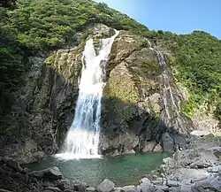 - 🌍 Ooko-no-taki waterfalls (大川の滝) (on the remoter southwest coast of the island, a 60- and 90-minute bus ride from Anbo and Miyanoura respectively). There are several waterfalls on the island, and this one is justly rated as one of Japan's best.The 90-meter falls are easily accessible, being a short walk away from the main highway on a paved road, and visitors can approach the base for a good view. Those wanting to get closer and wetter can scramble over boulders to the plunge pool.