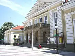 - 🌍 Railway Station (ЖП гара, zhe peh gara) (in an industrial area on the west bank of the Tundzha, about 1.8 km (1.1 mi) north-west of the city centre). Old building (1940s?) with a stone tile facade.