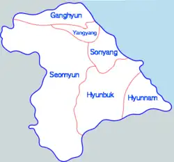 The original place name was 'Yangju' from Goryeo to the early Joseon Dynasty. However, during the reign of King Taejong of the Joseon Dynasty, most of the villages whose names end in 'Ju' were changed to 'Yangyang' as they were ordered to change their names to 'Yang', 'Cheon', and 'San'. Located in the middle of the Taebaek Mountains, which form the backbone of the Korean Peninsula, it connects Seoraksan Mountain in Yeong-dong, Gangwon-do to the East Sea, making it the "Sunrise Town" as it is.