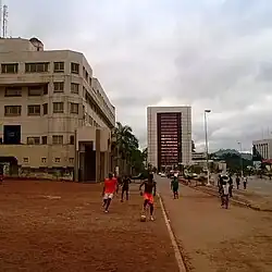 Boulevard du 20 mai, the main boulevard of the city stretching from northwest to southeast, is bustling with life. In the northwestern end you can see some of the biggest landmarks in Yaoundé including the Hilton Hotel, BEAC building and several government buildings. In the southeastern end, you can see the Central Post and the Telecommunications Building.