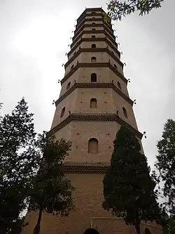 - 🌍 Chengtian Temple Pagoda (承天寺塔, 西塔, West Pagoda), 121 Limin Street, Xingqing District (兴庆区利民街121号) (In the middle of Old Town; bus routes 17, 19, 23, 25, 32, 33, 40, 501 and 游4). 09:00-17:30, to 17:00 in winter. A nice, medium sized garden area with classic Chinese buildings/architecture. The tower dominates the garden and the view from the top is one of the best you will get of Yinchuan. entry ¥10, plus ¥20 if you want to climb to the top of the pagoda.