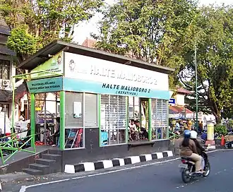 - TransJogja bus 1A goes to the main Tugu train station and Jl Malioboro for Rp3,500. Buy the ticket at the bus stop.