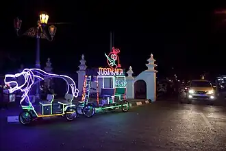 - Jalan Malioboro, with its vibrant street life, colourful shop facades, large walkways and street artists;