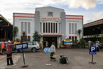- π Tugu Railway Station (Stasiun Tugu), Jl Mangkubumi No.1, β +62 274 589685. The main central station, serving cities such as Jakarta, Bandung, Paron, Surabaya and Solo. To check schedules and buy tickets enter from Jl Pasar Kembang (i.e., from the east end) and get a queue number from the stand facing the ticket windows. Then go to the opposite side of the room and fill out a ticket request slip, consulting the timetables on the wall to your left. You will be called to the appropriate ticket window, the announcement will be called (in Indonesian only) and displayed on the electronic sign on the wall. To check schedules and buy tickets online use tiket.com.