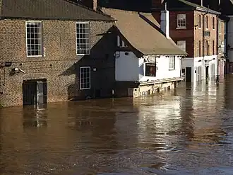 In spite of elaborate defences, York floods pretty much every winter. All it takes is a few days of sustained rainfall somewhere upstream, and the houses and businesses nearest to the Ouse are submerged. There's about 30 mi (48 km) of Pennine moors, from Harrogate to Richmond, where the pouring rain has only one way out. If it keeps raining, then 48 hours later the river at York is brimming; another day of rain and riverside properties start to become inundated.