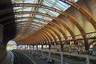 National Express operate daytime and overnight coaches from Birmingham, Hull, Leeds, London, Middlesbrough, Milton Keynes, Sheffield, and Sunderland. The coaches call outside the railway station, at 🌍 bus stop RC for northbound services, and at 🌍 bus stop RG for southbound services. Megabus do not serve York, but do call at Leeds.