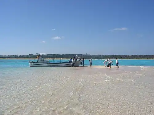 Far from town is a campground near a stretch of beach from which a sandbar called Yurigahama (百合ヶ浜) can be seen rising out of the ocean when the tide is right. There are boat rides to the sandbar for about ¥2000, and if you are an extremely strong swimmer, you should be able to snorkel out to the sands.
