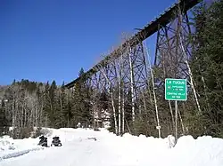 - 🌍 Rivière du Milieu railway bridge (50.3 km from the village of Hervey-Jonction, crossing the ZEC to the north by Chemin Tawachiche). This bridge is the highest railway bridge in Quebec. It looks like a half-bridge since on one side the railway arrives from the top of a mountain. Free.