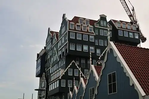- Inntel Hotel, Provincialeweg 102 (close to Zaandam railway station), ☏ +31 75 681-0171. Probably one of the weirdest buildings in the country. It's a new building, designed by architects Molenaar en van der Winden, that resembles about a dozen traditional Zaan houses plopped on top of each other. It looks odd, to say the least, but makes an impressive sight as you walk out of the railway station. It is a four-star hotel that has 160 rooms available. Free WiFi. €85-151.