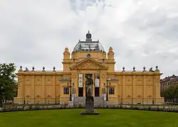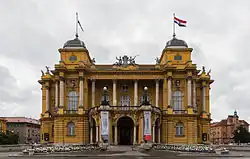 - 🌍 Palace Hotel, J.J. Strossmayer Square, ☏ +385 1 48-14-611. 4-star hotel. It was built in the Secession style in 1891 and converted into a hotel in 1905. The Arts Pavilion is 50 m away.