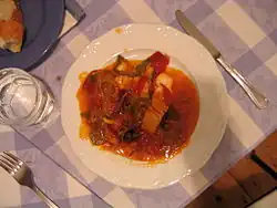 - Pollo al Chilindrón, chicken in a sauce of cured ham, tomatoes, onions and paprika,