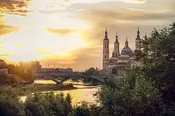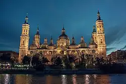 - 🌍 Cathedral-Basilica of Our Lady of the Pillar (Nuestra Señora del Pilar). The more famous of the two cathedrals is the one on the bank of the river Ebro. Holding an additional rank of basilica, this cathedral venerates the Virgin Mary who reportedly appeared to Saint James the Apostle on said riverbank during his travels in Iberia. Mary appeared on a pillar, which led to her being venerated under this particular name and also gave origin to the unusual Spanish female given name Pilar.