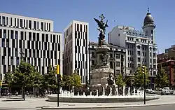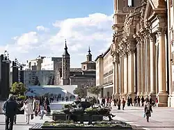 Plaza del Pilar is the main square, just south of the River Ebro. On the square are the two cathedrals and the "Fuente de la Hispanidad", a fountain and sculpture representing Columbus' discovery of the New World. The tourist office is here as well.
