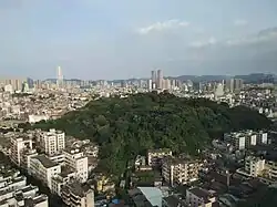 - 🌍 Wuguishan Nature Park (Wuguishan Natural Scenery Zone, 五桂山自然风景区), Wuguishan Sub-District (五桂山街道) (take bus no. K26 from the Zhongshan Railway Station and get off at Tianxin Park (田心森林公园); it is a short distance north of there). Centered around Wuguixiong Peak (五桂雄峰), the highest peak in the Wuguishan mountain range, which stands at 531 m above sea level and is also the highest land formation in Zhongshan. Free.