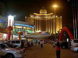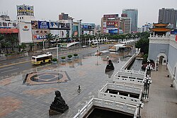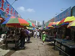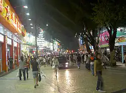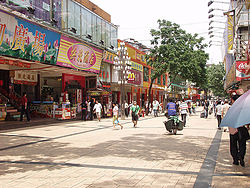 - Gongbei (拱北; Gǒngběi) is the main tourist area with a wide variety of inexpensive hotels, clothing, electronics, souvenirs, food, drink, and colorful entertainment in relatively close proximity to the Macau border crossing. Lianhua Lu (Lotus Road; 莲花路; Liánhuālù; sometimes called Walking Street; 步行街; Bùxíngjiē) while interesting any time of day, is truly a must-see spectacle at night, with dozens of small outdoor-bar stalls which are always packed at night. Here you can see people drinking, playing dice with bar girls, and watching (or interacting with) working girls and passers-by on the crowded pedestrian-only street that is filled with shops and street-food vendors (see the Drink Section for more details). There is also the more upscale Bar Street (酒吧街; Jiǔbājiē), a modern strip of nicer upscale bars with indoor and outdoor seating, some featuring live music (many blasting loud music inside). Most of these cater to Chinese businessmen and moneyed tourists. At the southern edge of Gongbei is an underground shopping center and the Macau border crossing (see Buy Section for more details).