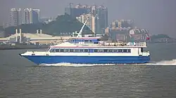 From Hong Kong and Shenzhen: There are several ferries per day from Hong Kong International Airport, HK-Macau Ferry Terminal (港澳码头; Gǎng'ào Mǎtóu; Hong Kong Island), China Ferry Terminal (中港城码头; Zhōnggǎng Chéngmǎtóu Kowloon) in Hong Kong and Shekou Ferry Terminal (蛇口港; Shékǒugǎng; Shekou) in Shenzhen arriving at the Jiuzhou Ferry Terminal (九洲港码头; Jiǔzhōugǎng Mǎtóu). There is a taxi rank and bus stops directly outside. You can take a free bus ride to Gongbei by showing your ferry ticket. Visas can be purchased here for most nationalities (not American citizens). Payment is in RMB only and the ATMs are through immigration so plan ahead.