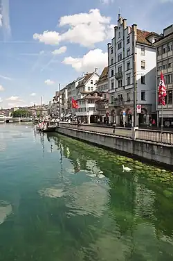 - 🌍 Hotel zum Storchen, Am Weinplatz 2, ☏ +41 44 227 27 27. On the river Limmat with an exclusive restaurant.