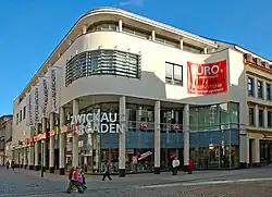 - 🌍 Zwickau Arcaden, Innere Plauensche Straße 14, 08056 Zwickau. The Arcaden shopping gallery fills an entire block in Zwickau's old town and features most of the local favourites in terms of retail chains. Of importance to travellers arriving by car may be the large parking facility, where one can pay both by cash and most cards.